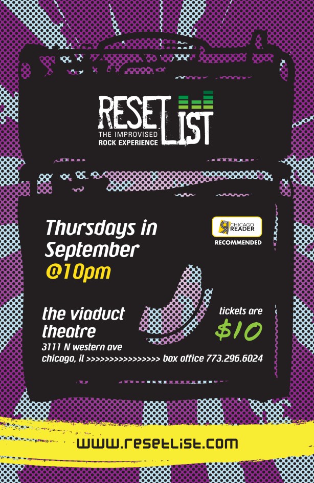 Not only are we planning on impregnating your ears with our rock babies but we’ve invited our friends to join in on the fun.  Allow me to explain.  Reset List will have a different opening act for each of our five shows in September at the Viaduct Theater.  While most bands just have other bands opening up for them we decided to be more inclusive and have invited a wide range of talents to join us in blowing your children’s children’s children’s minds.